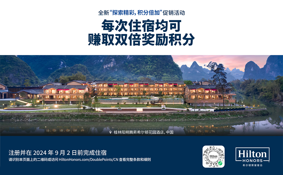 每次入住均可赚取双倍奖励积分。2024年9月2日前在我们7,500多家酒店和度假酒店中的任意一家完成住宿即可赚取双倍奖励积分。