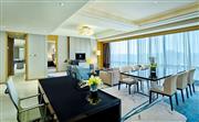 在138㎡典雅舒适的大使套房中体验专属的入住享受。套房内的工作区和休息区布局精妙、各自独立,为您带去卓越享受。房内拥有齐全的现代化设施,如液晶电视、自动咖啡机以及电动窗帘等。豪华浴室内的深浸式浴缸与劲爽雨林花洒将为您洗去疲惫,让您精神焕发。在舒适的沙发上舒展自己、观看一部电影,或在配有无线网络、充足电源及数据接口的专用工作区全身心投入工作。