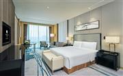 尊贵大床房面积达70㎡,通过落地窗可以俯瞰旖旎城市景致,宽敞舒适的空间与室内独立的办公区域和高速的宽带上网服务,液晶电视、私人熨斗和熨衣板等设施满足您的住宿需要。
