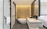 客房面积39㎡,配有一张特大床。房间配有65英寸液晶电视和高速互联网。优质品牌确保舒适,包括淋浴、浴缸、床垫和床上用品。智能设施如电动窗帘、智能马桶增加了入住舒适性。