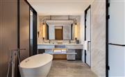 套房面积宽敞,为75㎡。套房配有步入式衣橱,65英寸液晶电视和高速网络。优质品牌确保舒适,包括淋浴、床垫和床上用品。智能设施如电动窗帘、智能马桶增加了入住舒适性。